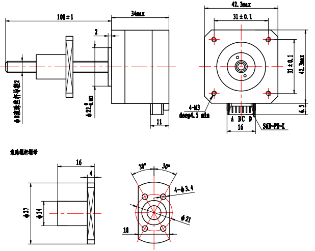 您的位置:首頁(yè) - 產(chǎn)品展示 - 步進(jìn)電機(jī)系列 - 直線步進(jìn)電機(jī)—外驅(qū)式17HS滾珠絲桿